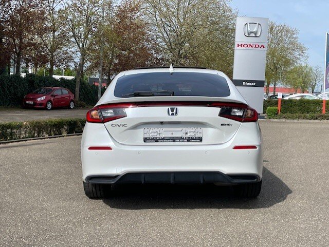 De Honda Civic Advance (e:HEV 2.0) is een hybride hatchback met een systeemvermogen van 135 kW (184 pk) en 315 Nm koppel, die in ca. 7,8 tot 8,1 seconden naar 100 km/u accelereert. De Advance is de topuitvoering, voorzien van een panoramisch schuifdak, Bose-geluidssysteem, 9-inch touchscreen, en uitgebreide Honda SENSING-veiligheidssystemen. AutoGids +3Belangrijkste Kenmerken & Specificaties (Advance Uitvoering)